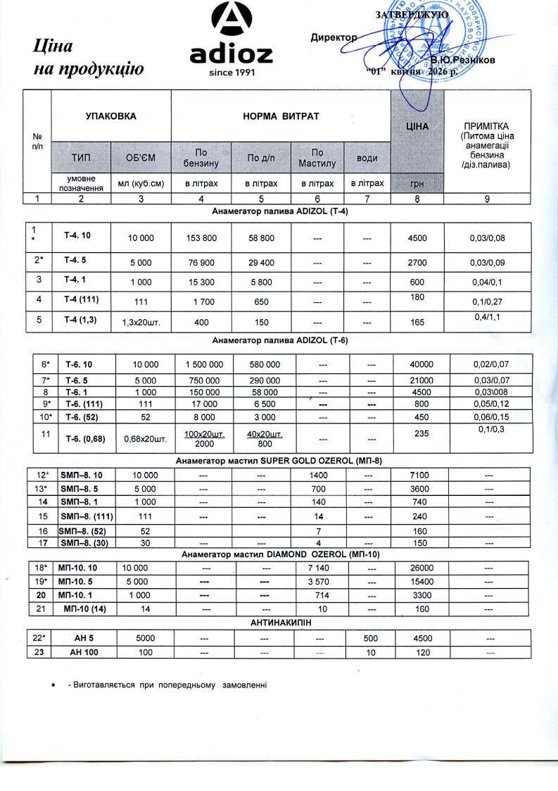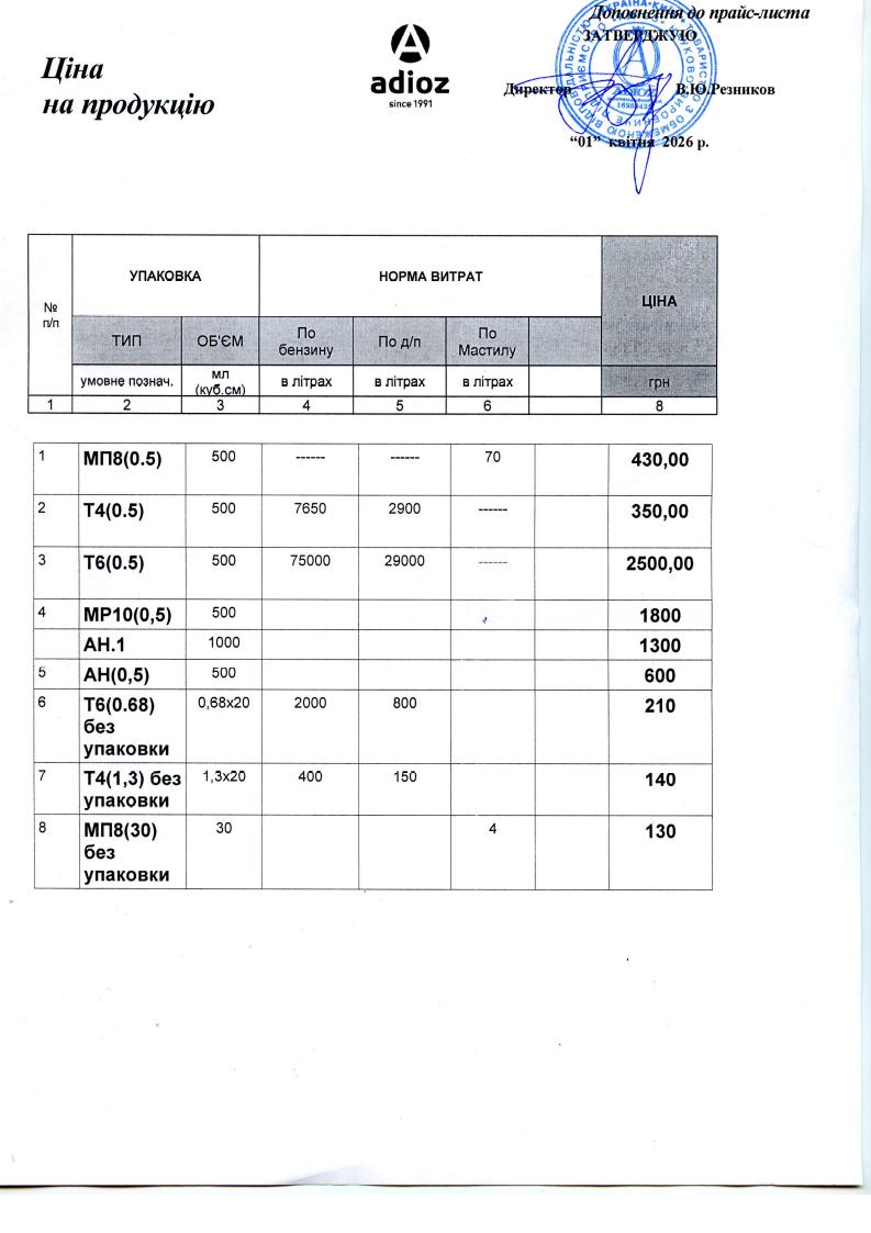 Ціни на продукцію в Україні з 01.04.2026